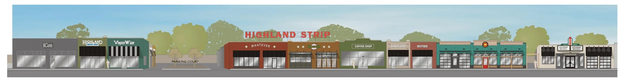 The Highland Strip is now leasing! Commercial spaces are available from 1,780 sf to 3,880 sf - perfect for your restaurant, retail, office, or service. Amenities include: